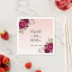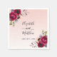 A napkin for a romantic wedding. Soft rose gold, blush pink gradient background. Decorated with burgundy and rose gold coloured florals, flowers. Templates for your names and the wedding date. Your names are written in black with modern hand lettered style script.