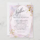 WEDDING INVITATION | Hand painted jaspé in pastel shades of pink rose with hints of lilac - accented with yellow gold nuggets at the corners and a crystal style frame in gold with a sheer white centre highlighting the invitation text. Handwritten script calligraphy text on the diagonal "together" at the top allows a warm personal appeal - easy to personalise template.