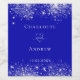 A royal blue background with elegant faux silver glitter dust. Personalise and add names and your wedding date.