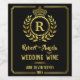 Serve your wedding guests in style with these custom, royalty-inspired wine labels. Designed in black and faux gold, the design includes a geometric frame in classy Art Deco style with an elegant laurel wreath and crown motif. Your personalised monogram letter fills the centre, along with more text of your choosing. You can also "customise" to alter the design or change the background colour to another shade.