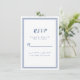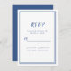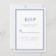 Simple and elegant wedding RSVP enclosure card features a minimalist design with a double frame border in classic blue on a crisp white background. Personalise with the date of your wedding. Spaces provided for your guest to add their names and responses for a return reply. Lettering and script are in matching classic blue. The back of the card is matching solid classic blue.