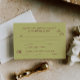 The response card boasts a serene chartreuse coloured background and burgundy coloured font, providing a vintage mediterranean aesthetic.
