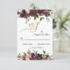 Wedding RSVP Deep Red Burgundy Floral Gold Script Card