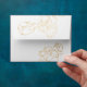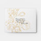 An elegant personalised return address envelope for your wedding RSVP card. The delicate ombré gold cherry blossom drawing wraps around the outside of the self addressed envelope. The interior has a subtle gold marbling. This envelope complements any colour in the Elegant Modern Gold Botanical Wedding Suite.