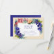 Watercolor floral arrangement of deep blue/purple flowers complimented with red flowers with a gold rectangular frame. Deep purple backside. All type and background colour is customisable.