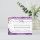 Wedding RSVP Insert purple Vintage Art Invitation Postcard
