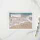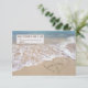 Beach hearts in sand with names in window view of ocean with frothy surf for wedding RSVP