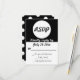 Fully personalizable black and white wedding RSVP reservation card with a customisable polka dots pattern design on the backside. The colour of this RSVP card is fully customisable to match it with your own wedding colour theme. To change the black colour simply click the "Customise it!" button and chose any colour you like in the "Printed Background Colour" palette. Matching customisable wedding stationary and accessories are available at the Forever In Love Wedding stationary store.