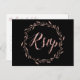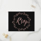 Wedding RSVP Postcards Rose Gold Foil Wreath Black