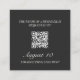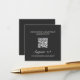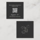 Charcoal and linen wedding RSVP card with a QR code and a monogram locket illustration on the back.