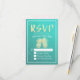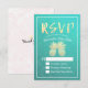 Wedding RSVP Reply Gold Pineapple Couple Teal Rose Card