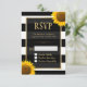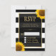 Wedding RSVP Rustic Sunflower Black White Striped Card