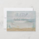Ocean beach with starfish and blue floral plants in sand for wedding RSVP