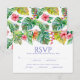 Tropical watercolor floral arrangement with tropical flowers on the backside also. All type and background colour is customisable.
