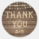 Wedding Rustic Wood Lights Initials THANK YOU Classic Round Sticker