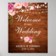 Rustic Wedding Wood String Lights Pink Blush Floral Poster