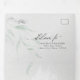 Pale sage green eucalyptus leaves paired with a modern abstract watercolor brush stroke background in ultimate grey and white - all in one wedding invitations with pre-addressed detachable meal choice rsvp for your guests to easily mail back
