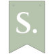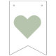 A simple bunting flags banner for a sage green wedding, with the words "Mr. & Mrs." and the family name of the new couple and 3 hearts. The text is in white caps on sage background, the hearts and the ampersand are sage green on white background.
