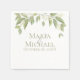 elegant sage foliage leaves Baby's breath floral wedding paper napkin. Custom personalised with bride and groom names and wedding dates. With beautiful botanical greenery. A simple and classy design for your wedding reception, engagement party, or any wedding event.