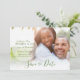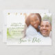 The design features a custom horizontal photograph front with template details in the space left of the couple. Replace the placeholder photograph with your similar horizontal format photo that leaves space to the side for the text. Personalise the template information, remove any text or click customise to select a font style, size, and colour you prefer. Placeholder photograph courtesy pixabay.com.