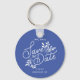 Wedding Save the Date Calligraphy Botanical Blue Key Ring