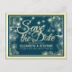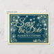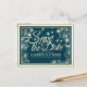 Wedding Save The Date Chic Blue Gold Flowers Light Announcement Postcard