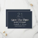 Save The Date for The Wedding, Formal Invitation To Follow, Elegant Faux Silver Grey Typography on Modern Navy Blue Background, Chic Wedding Announcement Save The Date Card for your guests.