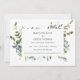 Elegant script wedding Save the Date photo card with sage green eucalyptus on a white background. Personalise by adding your photo and text. Contact us for help with customisation or to request matching or coordinating products.