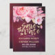 Wedding Save The Date Floral Feathers Burgundy Red