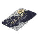 Wedding Save The Date Magnets Templates - Elegant Sunflowers, Vintage Lace Frame and Chic String Lights on Navy Blue Background.