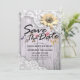 Save The Date Wedding Invitation Card Templates - Vintage Lace, Sunflower and String Lights on Rustic Wood Background.