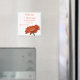 It was a bit smaller than expected, but I was too excited to check dimensions. The product itself send well printed though the grey text is a bit paint. Magnet worked perfectly on my fridge.
