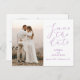 A beautiful save the date postcard featuring your vertical photo on the front set next to elegant script "Save the Date" hand-lettering in a pretty lavender purple. Add your names, date and location to personalise. The backside features all your custom details. Simple, classic, elegant with a minimal modern feel - coordinates beautifully with so many of today's wedding styles/themes.