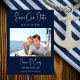 A Wedding Save The Date Photo Nautical Navy Theme in Dark Navy and White. To personalise simply insert your favourite couple's image into our easy template. Click FIT and ensure it is centred on the page. Next, insert your text into our easy template, replacing the sample Names, Wedding Date, and Location.