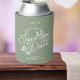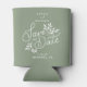 Send out these can coolers as a fun save the date alternative. Design features a hand drawn/lettered botanical graphic in white set against a sage green background (easily change the colour) Also add your names, date and location. Makes a really unique save the date or favour/gift for an engagement party, bridal shower or bachelorette party. Simple yet modern and fun - coordinates perfectly with so many of today's wedding styles.