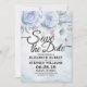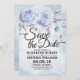 Save The Date Wedding Invitation Card Templates - Natural Elegant Blue Watercolor Bohemian Flowers, Feathers and Handwritten Script.