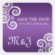 Elegant wedding "Save The Date" design with romantic  White Swirls Purple and custom text. Impress your family and friends with this stylish and modern design. Fully customisable! Easy to use and easy to personalise. Order Today!