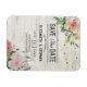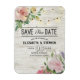 Wedding Save The Date Magnet Templates - Vintage Watercolor Pink Flowers and Elegant String Lights on Rustic Light White Wash Soft Wood Texture Background.
