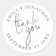 Wedding Script Thank You Names Date Black White Classic Round Sticker
