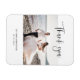 Wedding photo thank you magnet. Sweet and simple black script. Centred photo with names and date. Designed by Kimberly Brett.