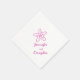 Simple outline drawing in white and hot pink of a starfish / seastar on wedding table napkins. Beautiful bright pink and white wedding napkins, perfect for a beach, coastal ocean inspired, or ocean sea destination wedding reception dinner. A great personalised addition to your wedding tables. Customise with your names. Original art and design by Sarah Trett for www.mylittleedenweddings.com