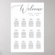 Welcome your wedding guests with this classic seating chart featuring modern calligraphy. This wedding poster includes enough room for up to about 120 guests. Make room for more (or less) guests by clicking the "customise" button and decrease or increase the font size. Extra tables can also be deleted. In addition to the placement of each guest, personalise this sign with the names of the bride and groom and the wedding date.