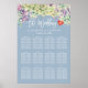 30 Tables Wedding Seating Chart Poster Templates - Elegant lovely Watercolor Succulent Plants on Blue Background.