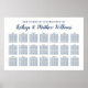 Simply elegant wedding seating chart poster design features a monogram of the bride and groom names and custom template text for twenty-one (21) tables with guest names. Classic navy blue and white colour scheme can be customised to coordinate with your colours.