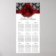 Christmas Wedding Seating Chart with pretty red rose and classy damask pattern.