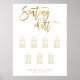 Wedding seating chart with with gold foil effect (faux, printed as an image) and customisable script text - you can add bride's and groom's name, wedding date and guest's names (7 tables with 8 guests each).