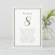 Our trendy wedding table number guest list features a template for the table number & list of guests at the table. Personalise elegant lettering and script with your guest's names & details in rustic olive green on a crisp white background. Perfect addition for a wedding, anniversary or large engagement party. The reverse side is a duplicate of the front allowing for easy viewing from both sides. Custom colour request accepted.