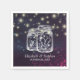 Wedding Shower Cocktail Paper Napkins Templates - Elegant Mason Jar & Vintage String Lights with Purple Sparkle Bokeh Lights Background.