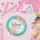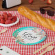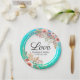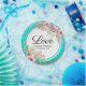 Elegant Wedding Shower Paper Plate Templates - Elegant Lettering Script and Vintage Watercolor Pink Flowers on Turquoise Teal Blue Green and Faux Gold Foil Confetti Polka Dots Background.