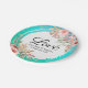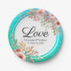Wedding Shower Elegant Pink Floral Teal Gold Dots Paper Plate